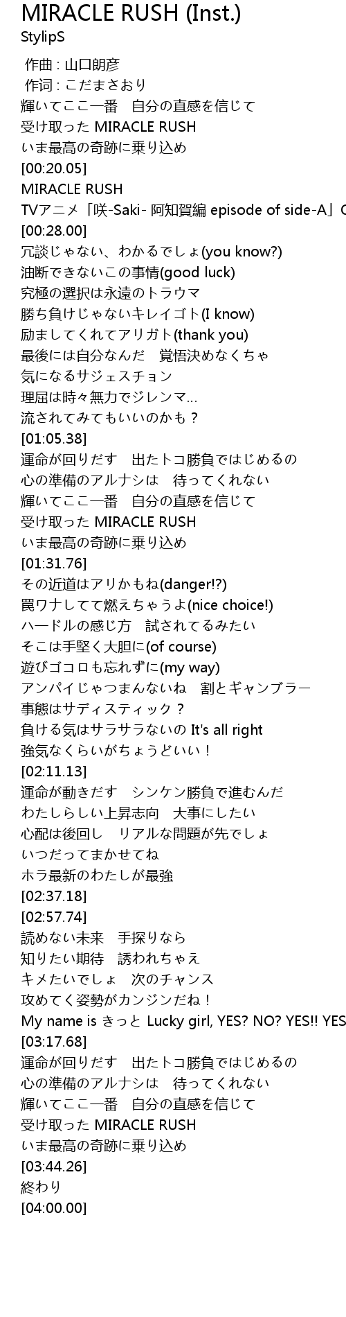 | [00:22.00] | MIRACLE RUSH |