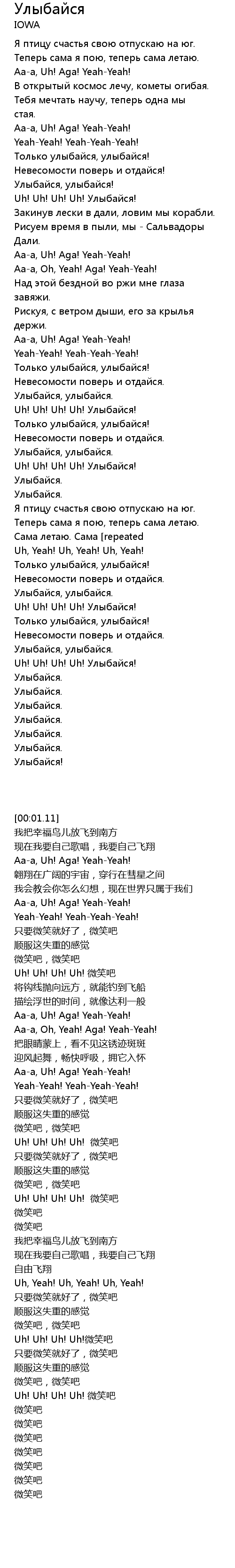| [01:38.75] | Uh! Uh! Uh! Uh! Улыбайся! |