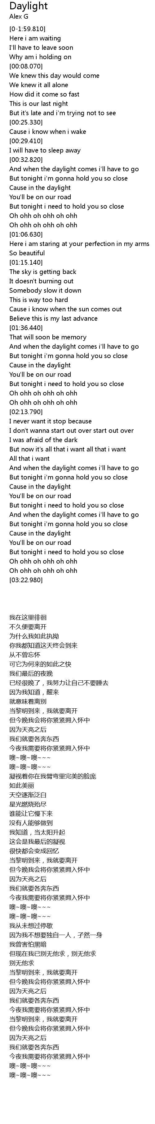 | [02:33.860] | And when the daylight comes i'll have to go |