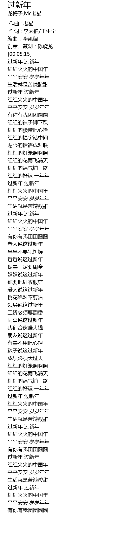 | [00:15.41] | guò xīn nián guò xīn nián |