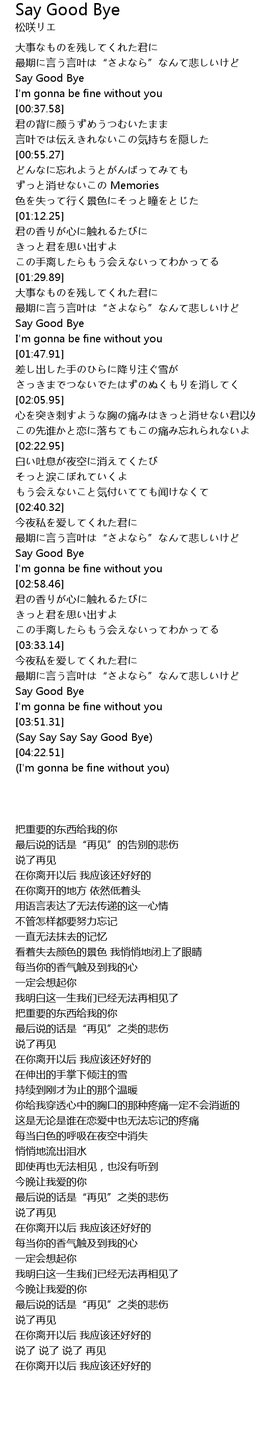 | [03:45.67] | Say Good Bye |