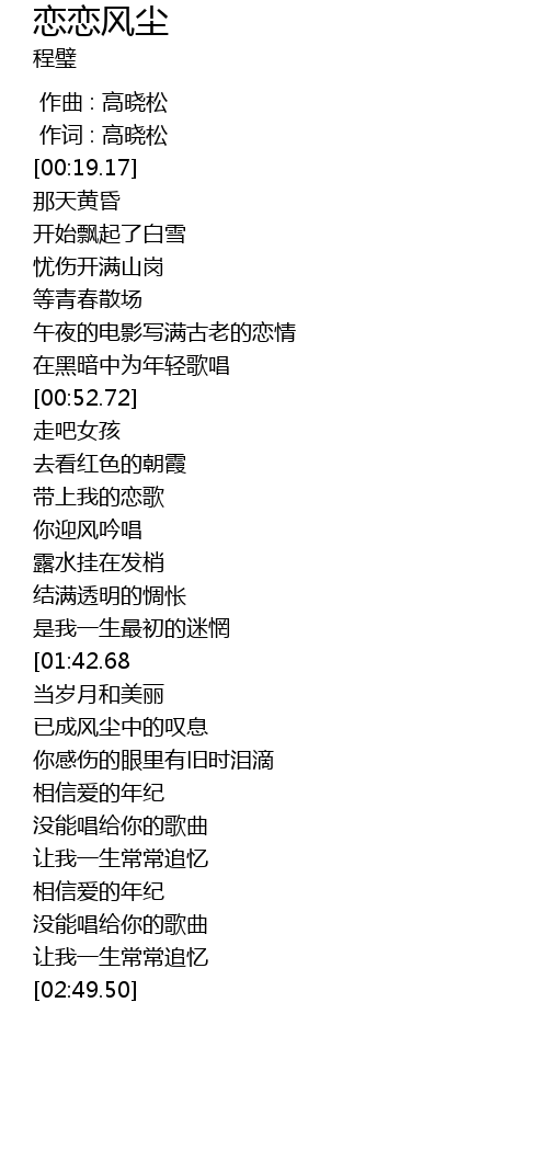 | [00:39.22] | 午夜的电影写满古老的恋情 |