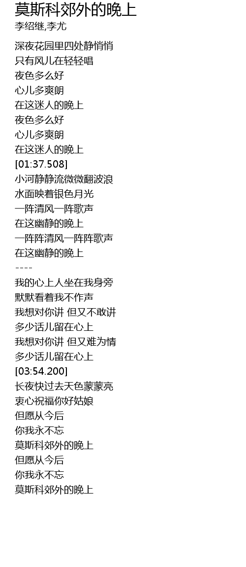 | [04:29.800] | 莫斯科郊外的晚上 |