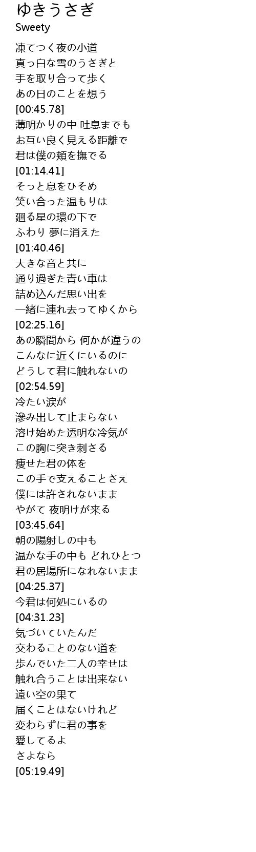 | [00:28.00] | 真っ白な雪のうさぎと |