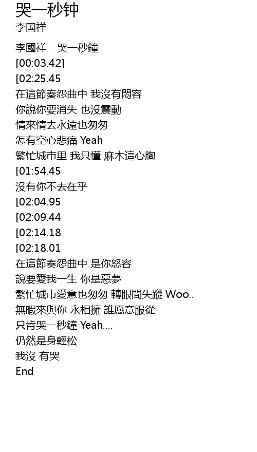 | [02:34.02] | 只肯哭一秒鐘 Yeah.... |