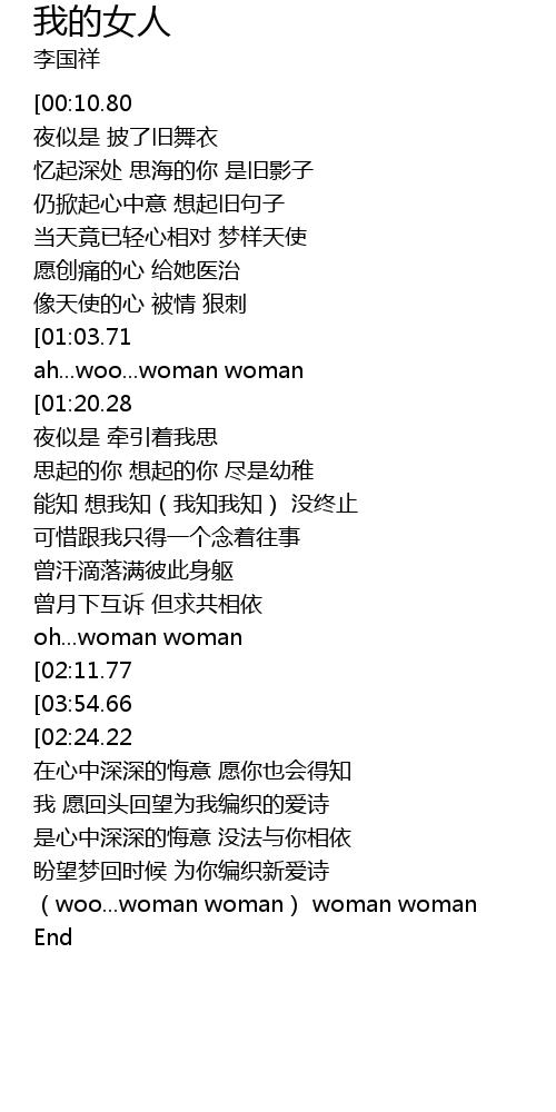 | [04:10.19][03:54.66][03:32.58][02:17.41] | woo...woman woman |