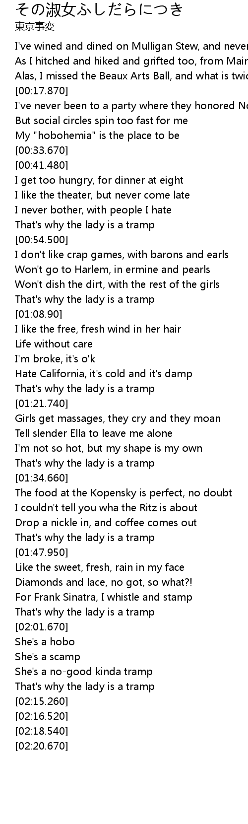 | [00:51.730] | That's why the lady is a tramp |