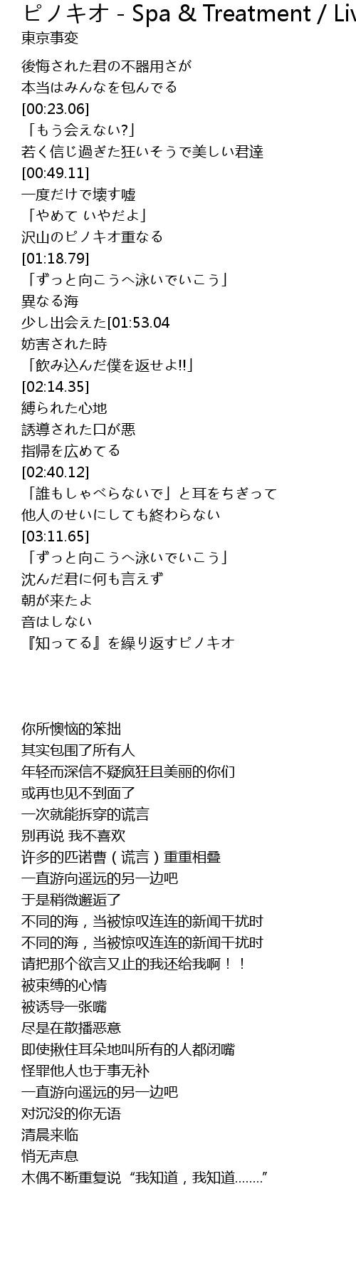 | [03:57.22] | 『知ってる』を繰り返すピノキオ |