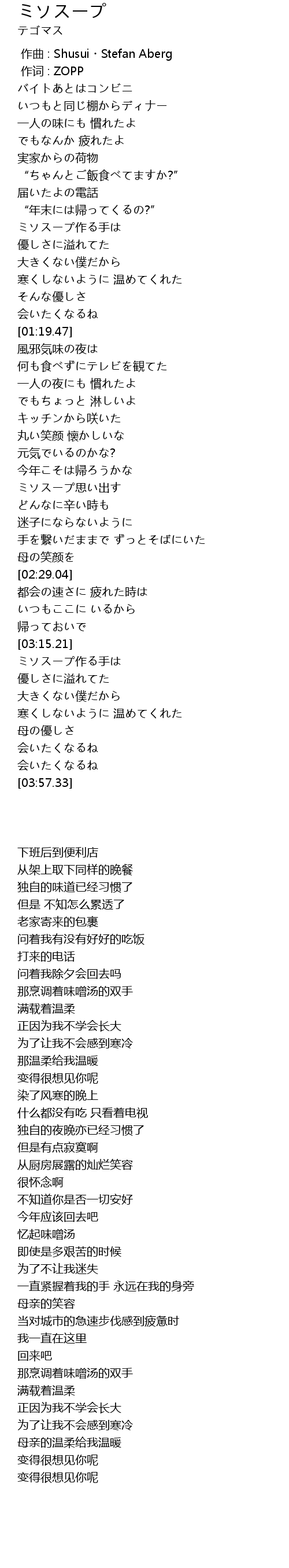 | [02:01.65] | ミソスープ思い出す |