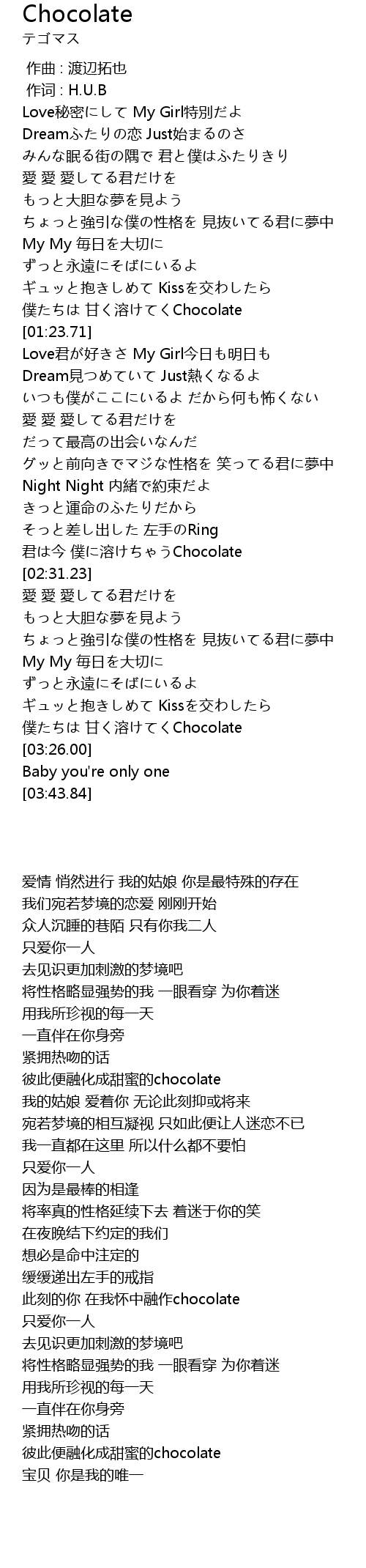 | [02:22.18] | jūn jīn pú róng Chocolate |