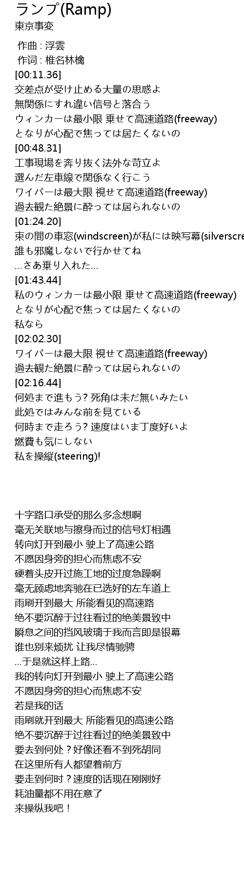 | [01:11.59] | ワイパーは最大限 視せて高速道路(freeway) |