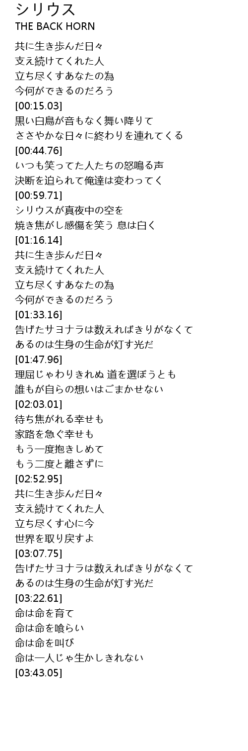| Song | シリウス |