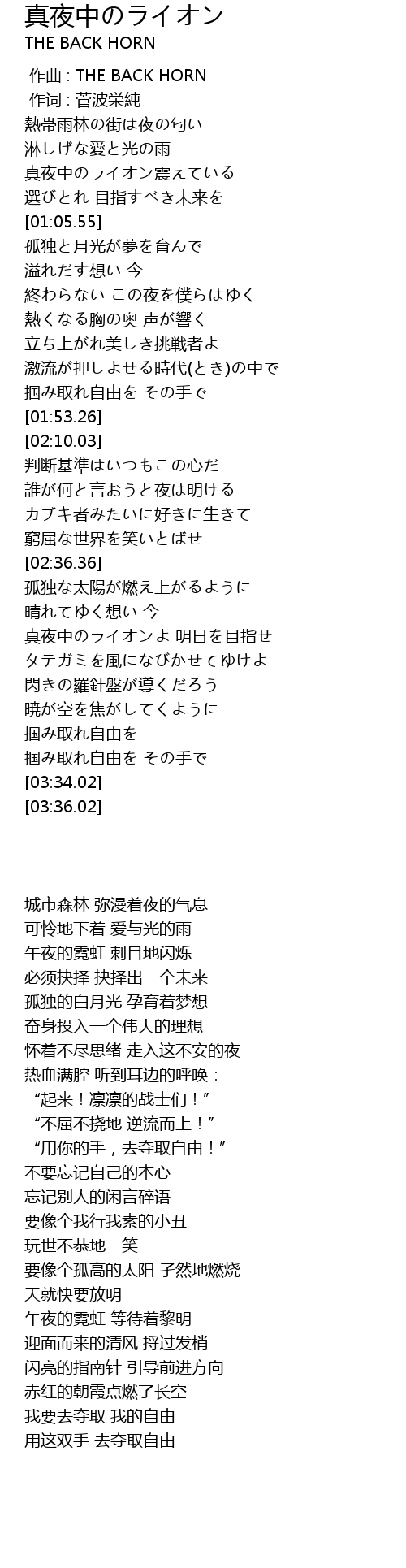 | [02:51.09] | 真夜中のライオンよ 明日を目指せ |