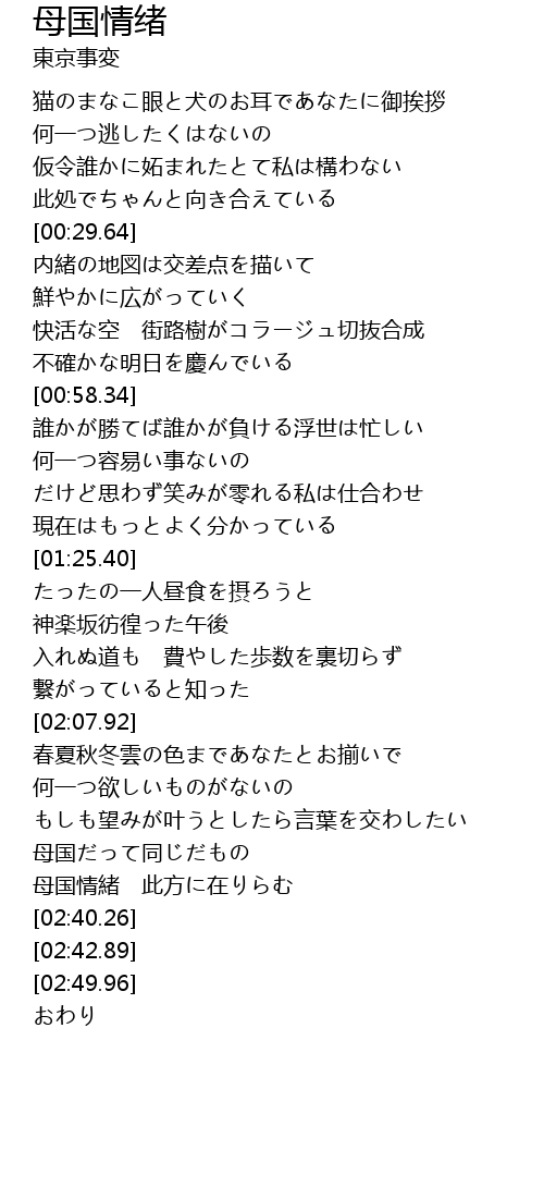 | [02:33.62] | 母国情緒 此方に在りらむ |