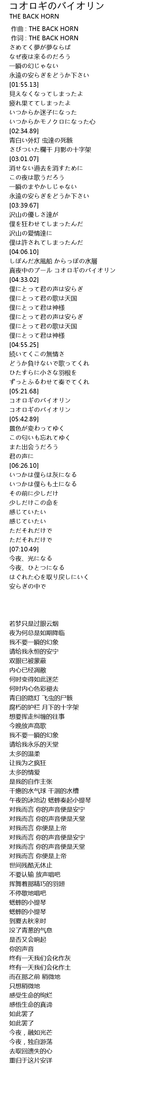 | [00:01.00] | zuò cí : THE BACK HORN |
