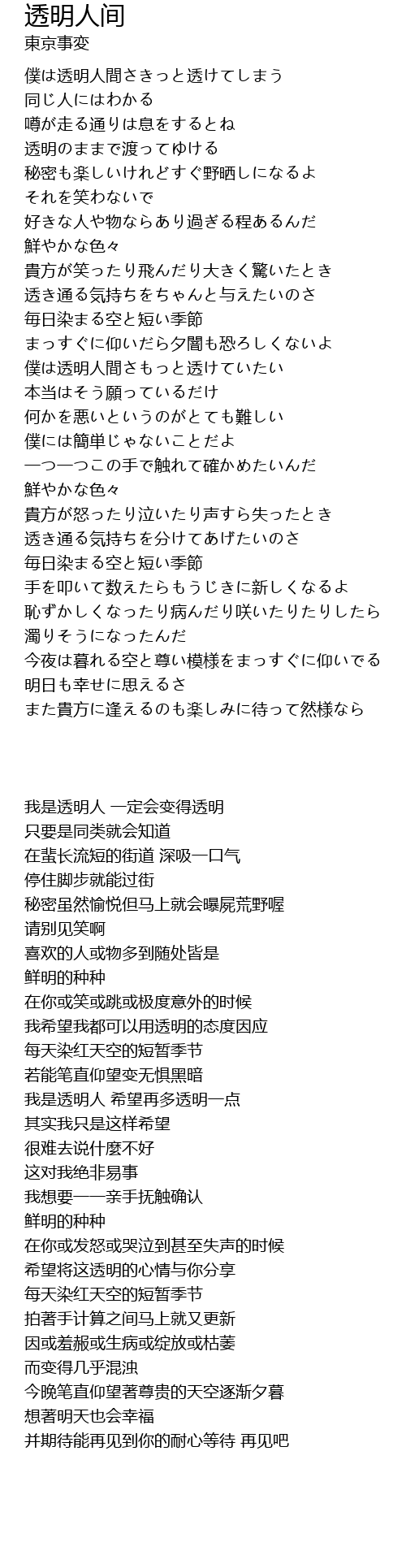 | [01:41.50] | 僕は透明人間さもっと透けていたい |