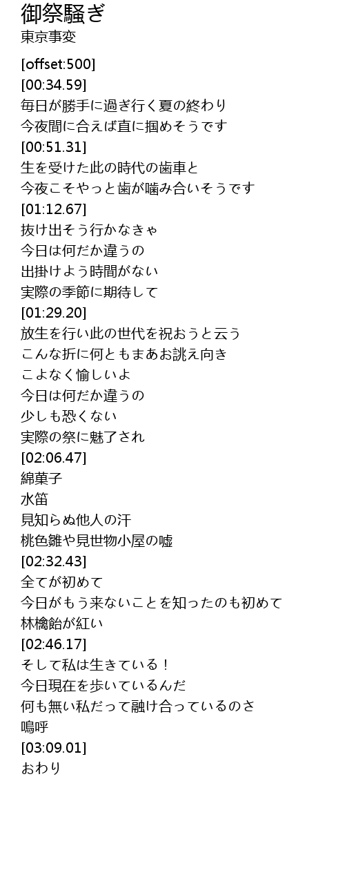 | [00:36.59] | 毎日が勝手に過ぎ行く夏の終わり |