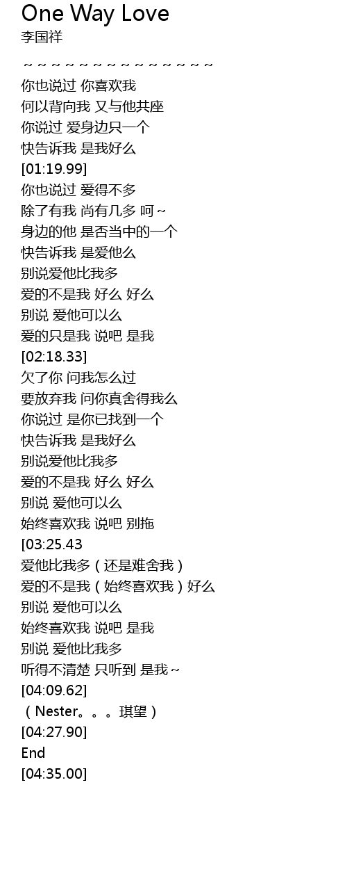 | [03:31.16] | 爱的不是我(始终喜欢我)好么 |