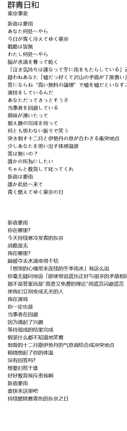 | [02:32.44] | 青く燃えてゆく東京の日 |