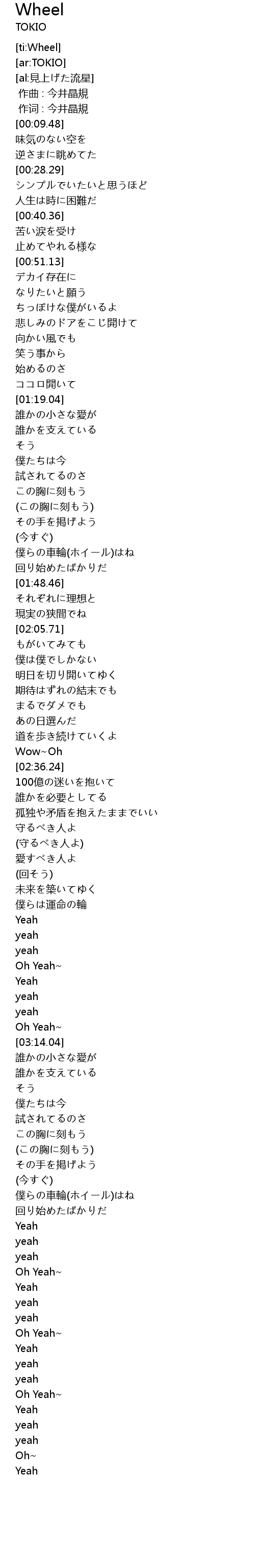 | [01:40.32] | 僕らの車輪(ホイール)はね |