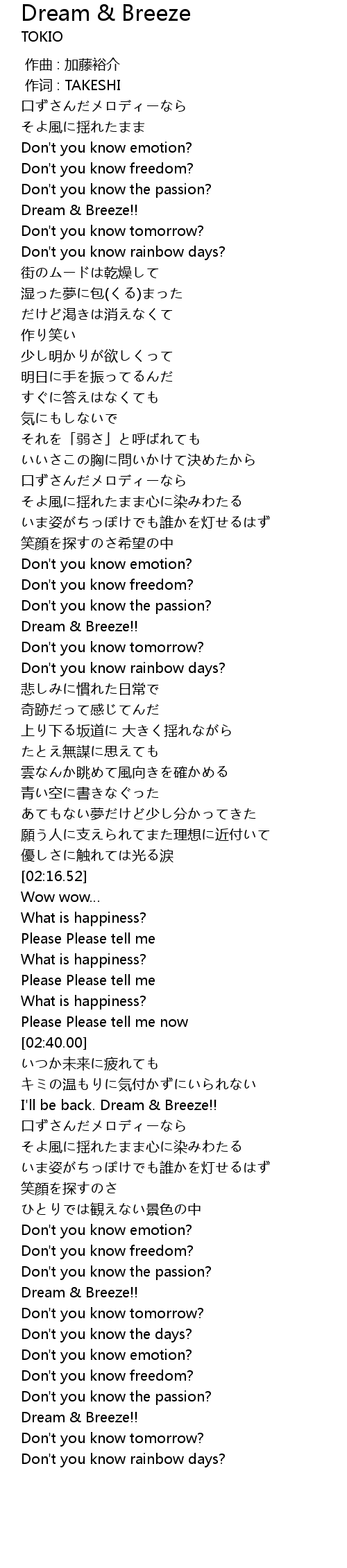 | [03:17.60] | I'll be back. Dream & Breeze!! |