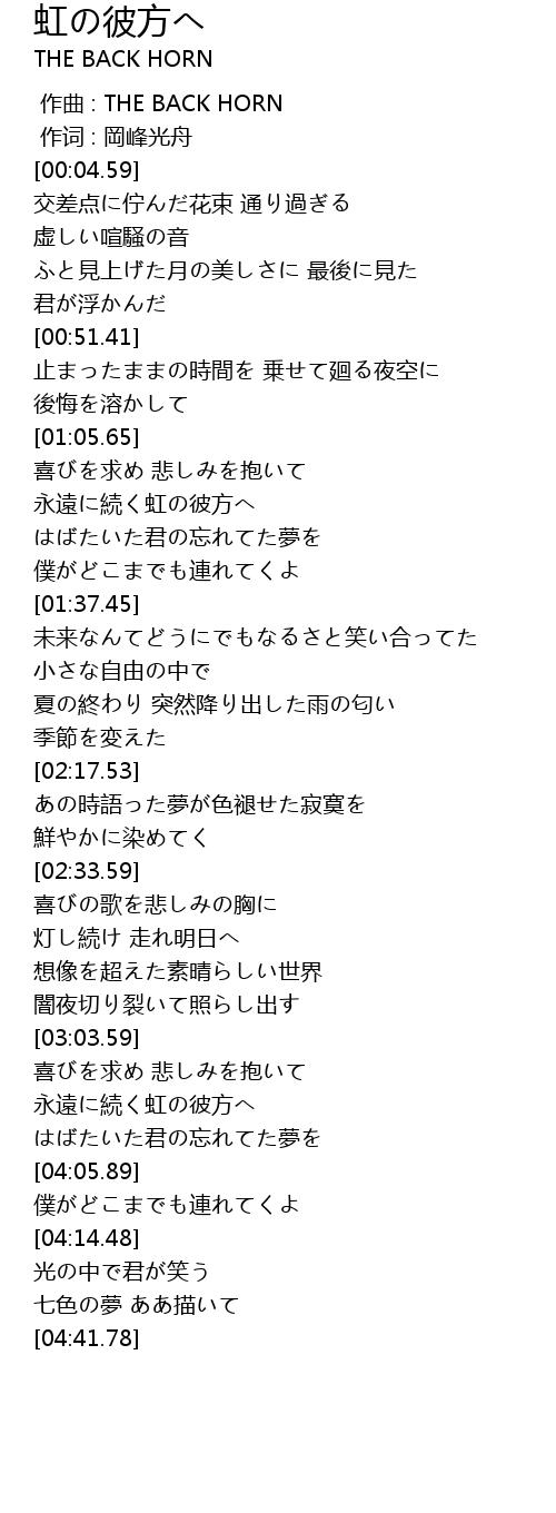 | [03:51.39] | 永遠に続く虹の彼方へ |