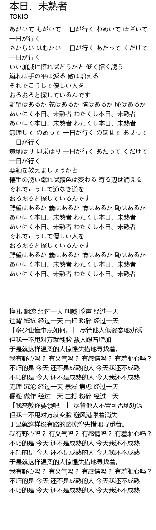 | [00:33.060] | さからい はむかい 一日が行く あたって くだけて 一日が行く |