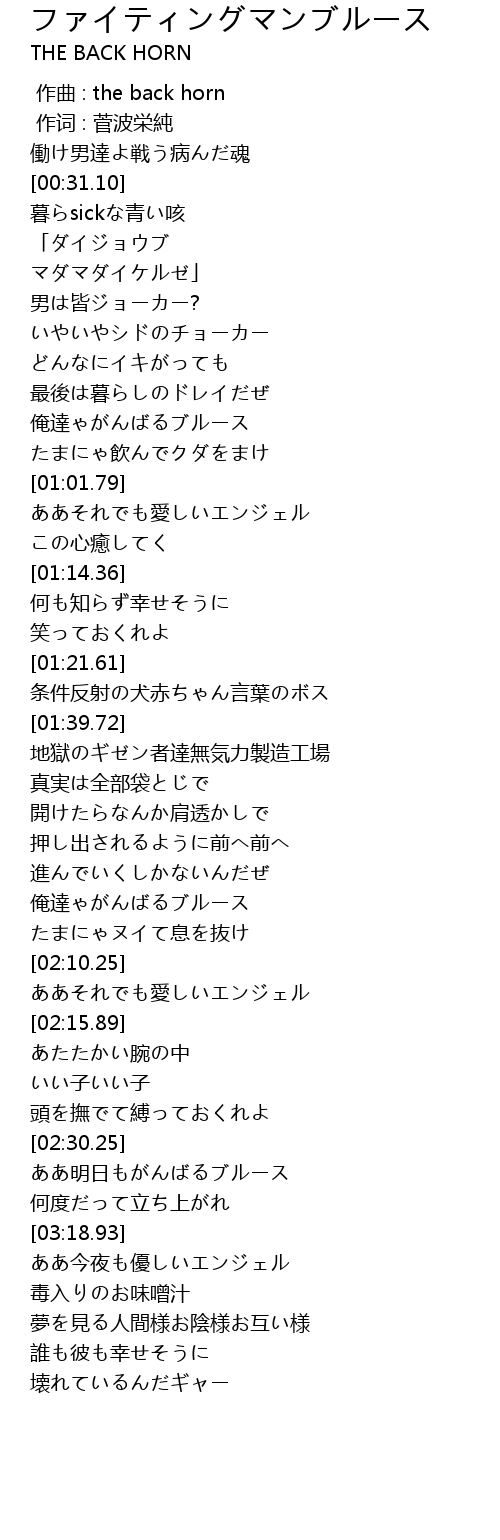 | [00:25.82] | 働け男達よ戦う病んだ魂 |