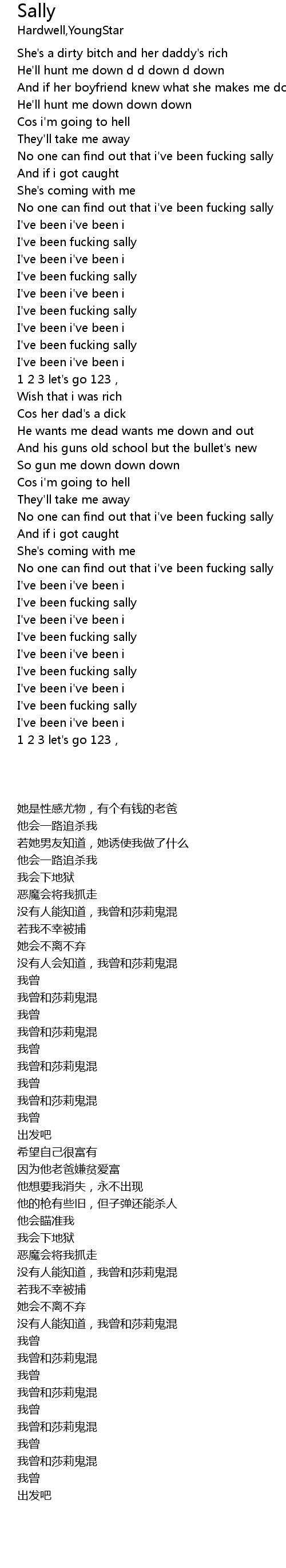 | [01:22.501] | I' ve been fucking sally |