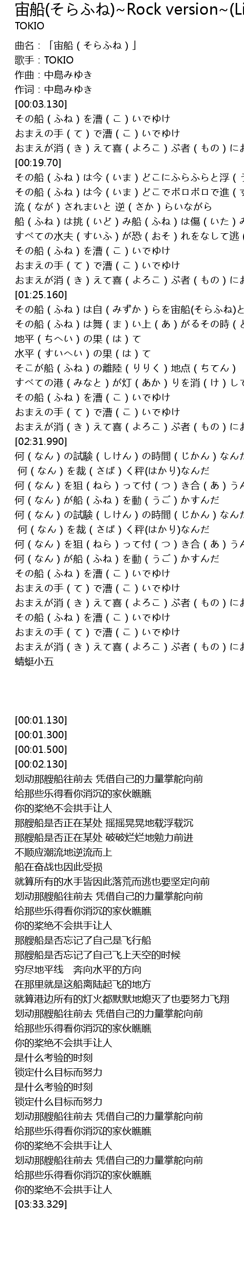 | [00:01.130] | 曲名:「宙船(そらふね)」 |