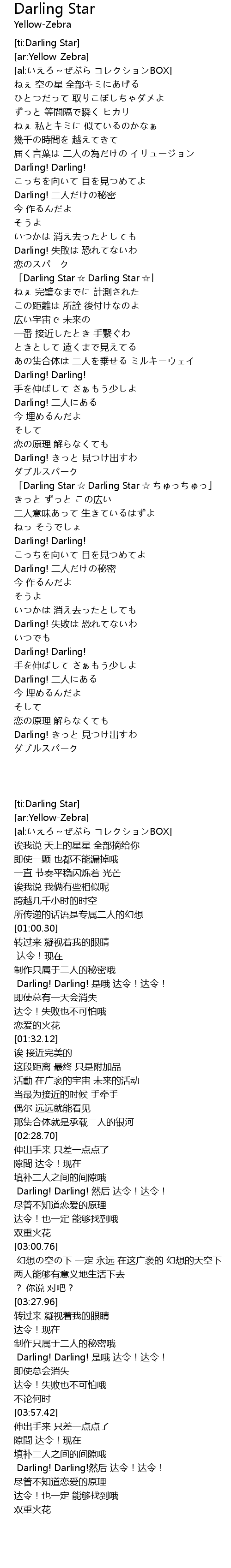 | [01:32.12] | 「Darling Star ☆ Darling Star ☆」 |
