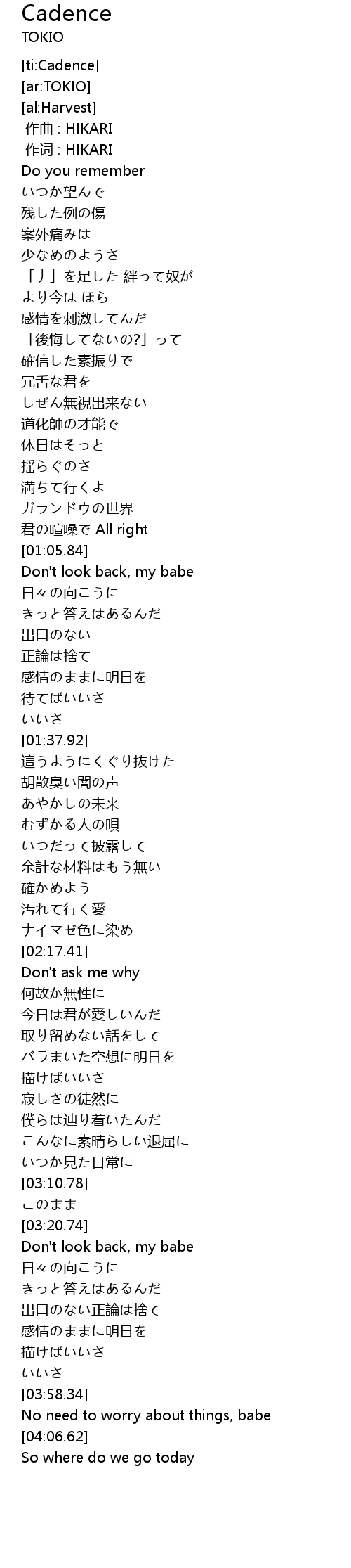 [00:00.00] 作曲 : HIKARI