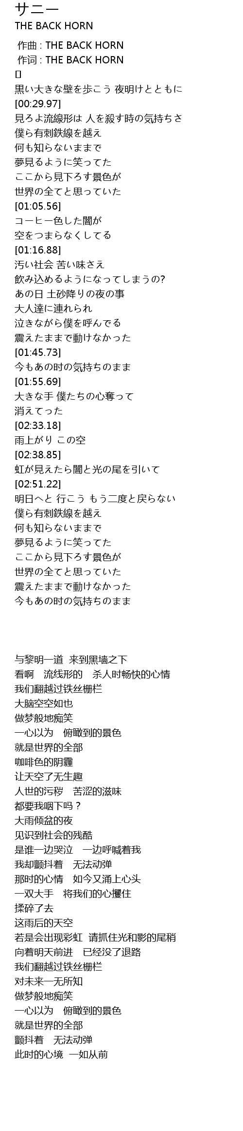 | [00:01.00] | 作词 : THE BACK HORN |