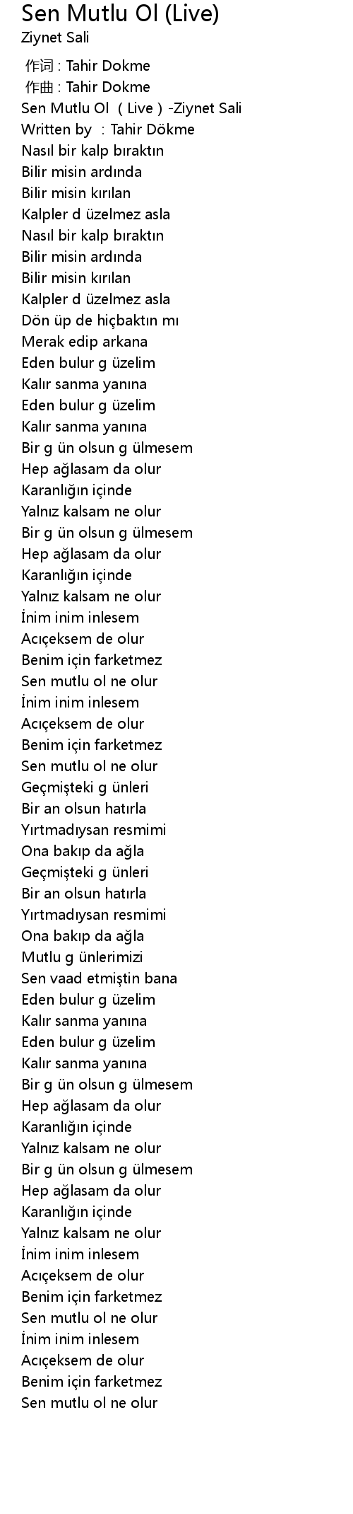 | [00:00.149] | Sen Mutlu Ol (Live)-Ziynet Sali |