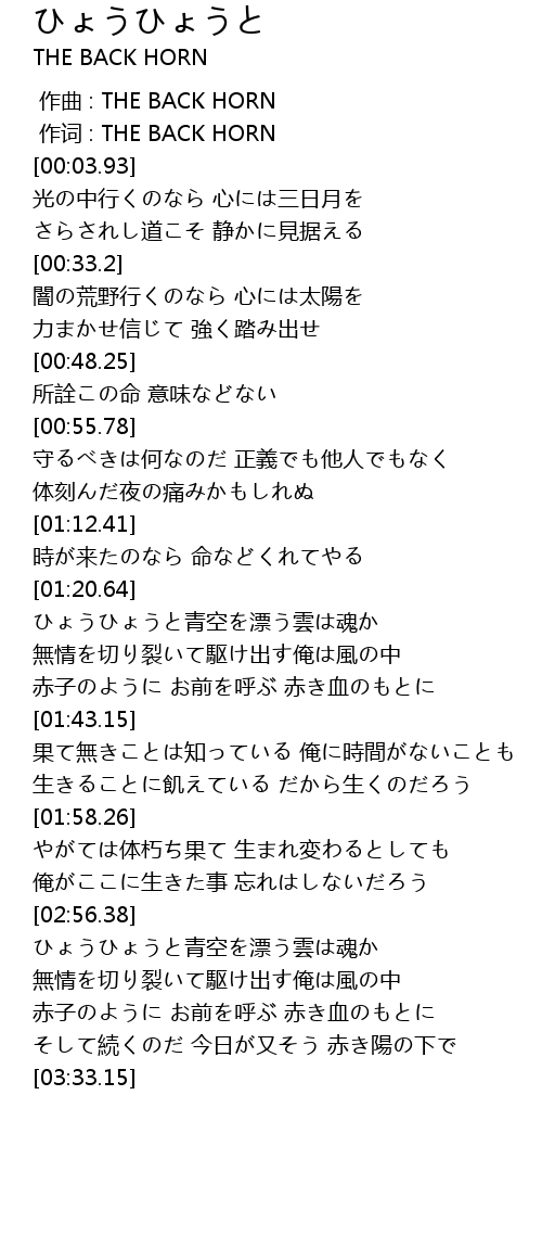 | [00:01.00] | 作词 : THE BACK HORN |