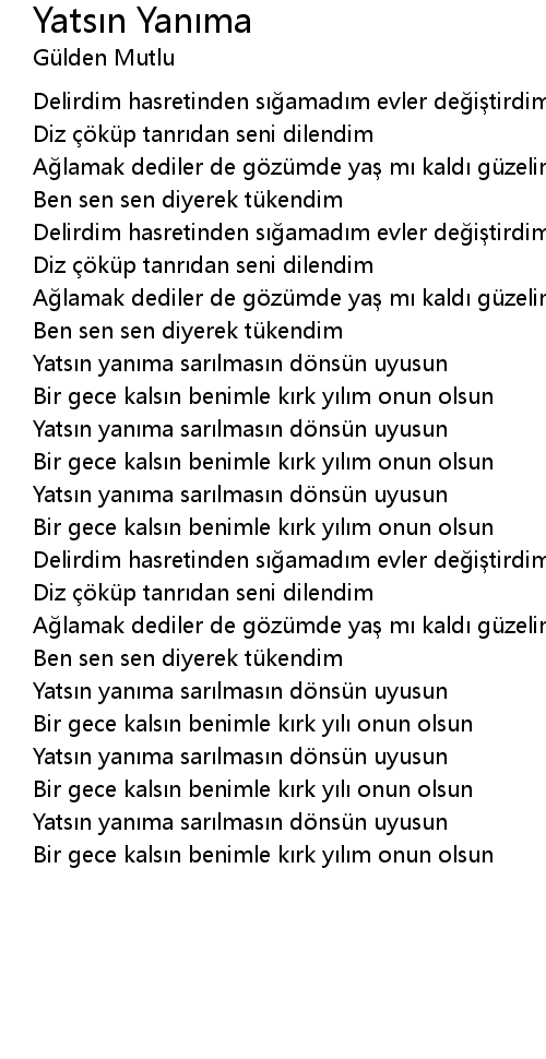 | Yatsın yanıma sarılmasın dönsün uyusun | |