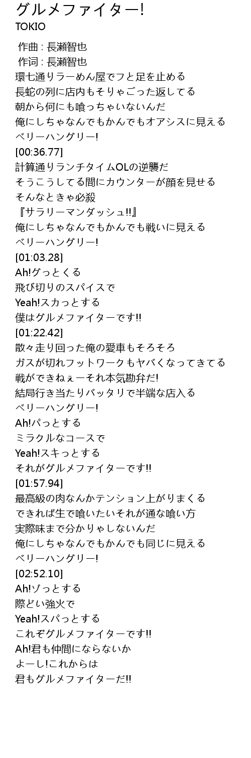 | [03:20.94] | 君もグルメファイターだ!! |