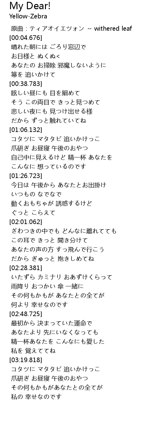 | [00:00.004] | 原曲:ティアオイエツォン ~ withered leaf |