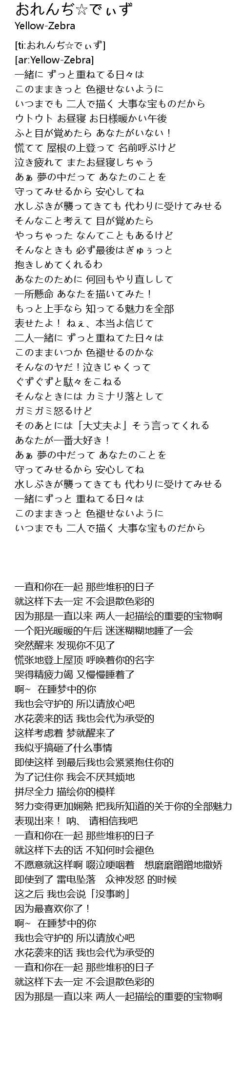 | [00:13.800] | いつまでも 二人で描く 大事な宝ものだから |