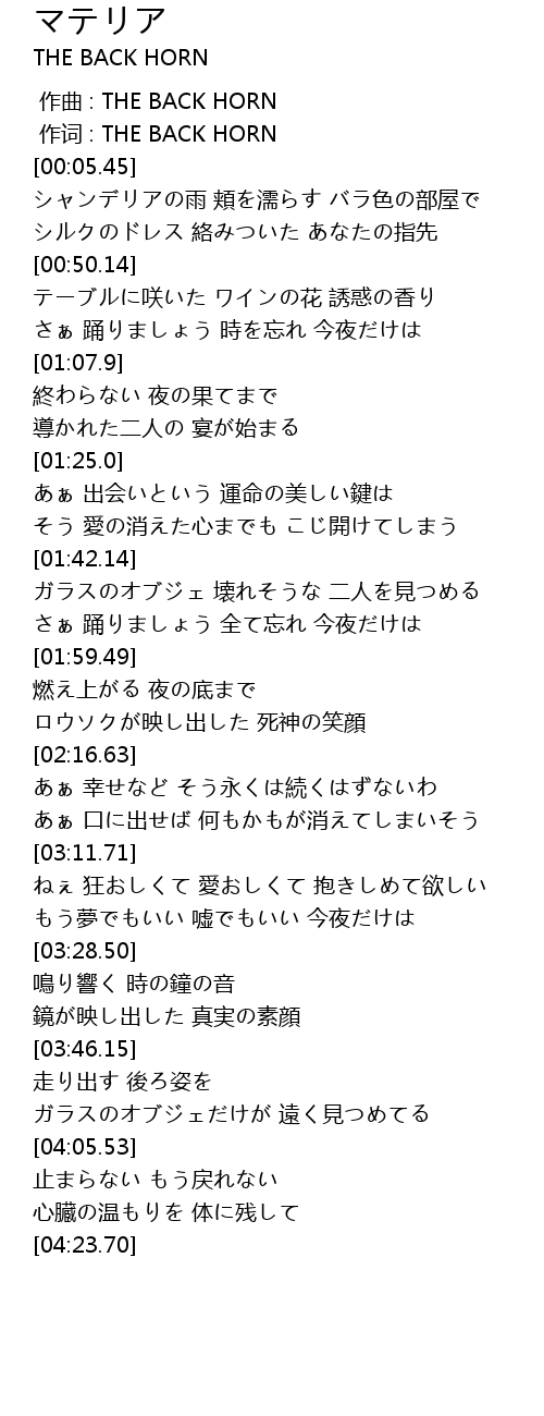 | [00:01.00] | 作词 : THE BACK HORN |