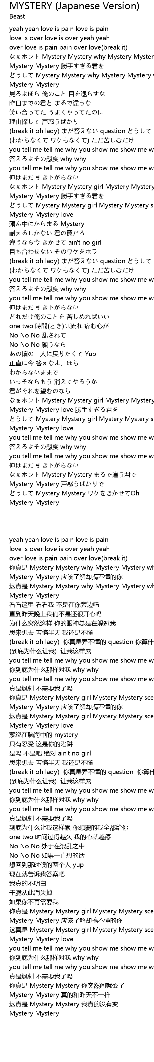 | [02:54.00] | Mystery Mystery love |