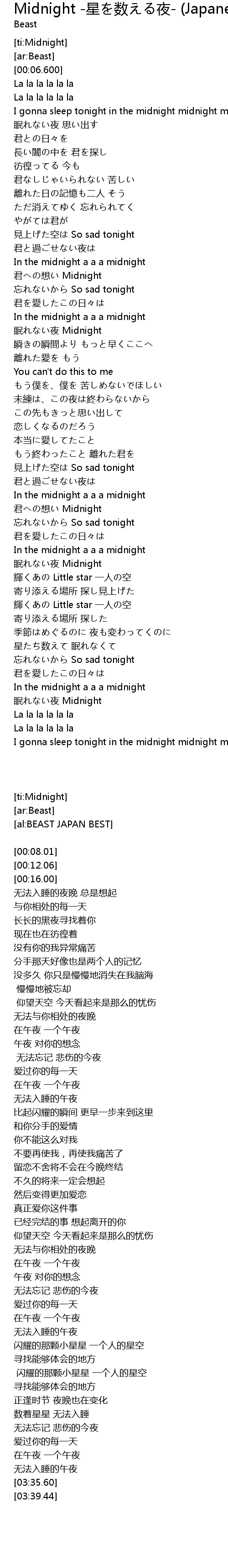 | [03:30.200] | 眠れない夜 Midnight |