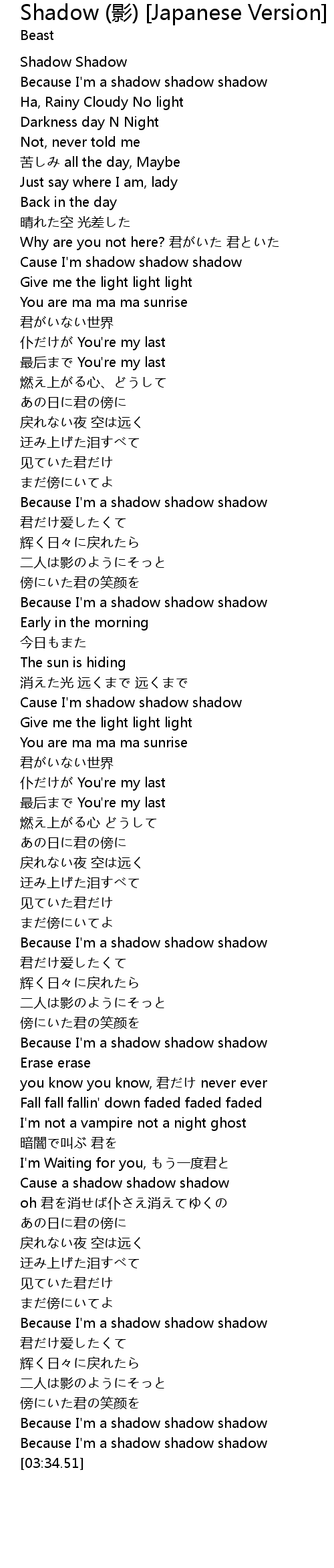 | [02:46.29] | Cause a shadow shadow shadow |