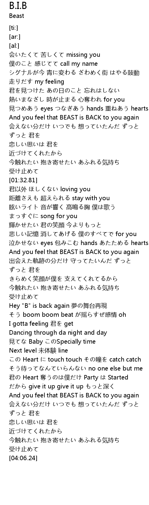| [02:33.14] | And you feel that BEAST is BACK to you again |