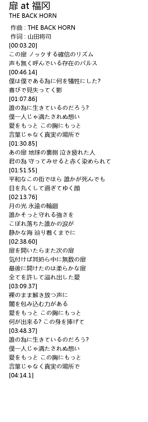 | [00:00.00] | 作曲 : THE BACK HORN |