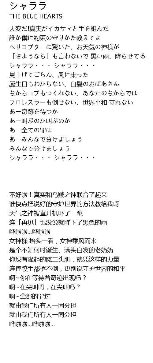 | [02:26.000] | シャララ・・・ シャララ・・・ |