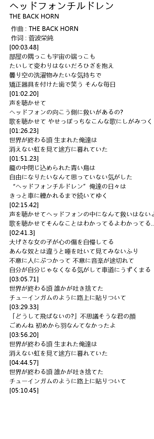 | [00:00.00] | 作曲 : THE BACK HORN |