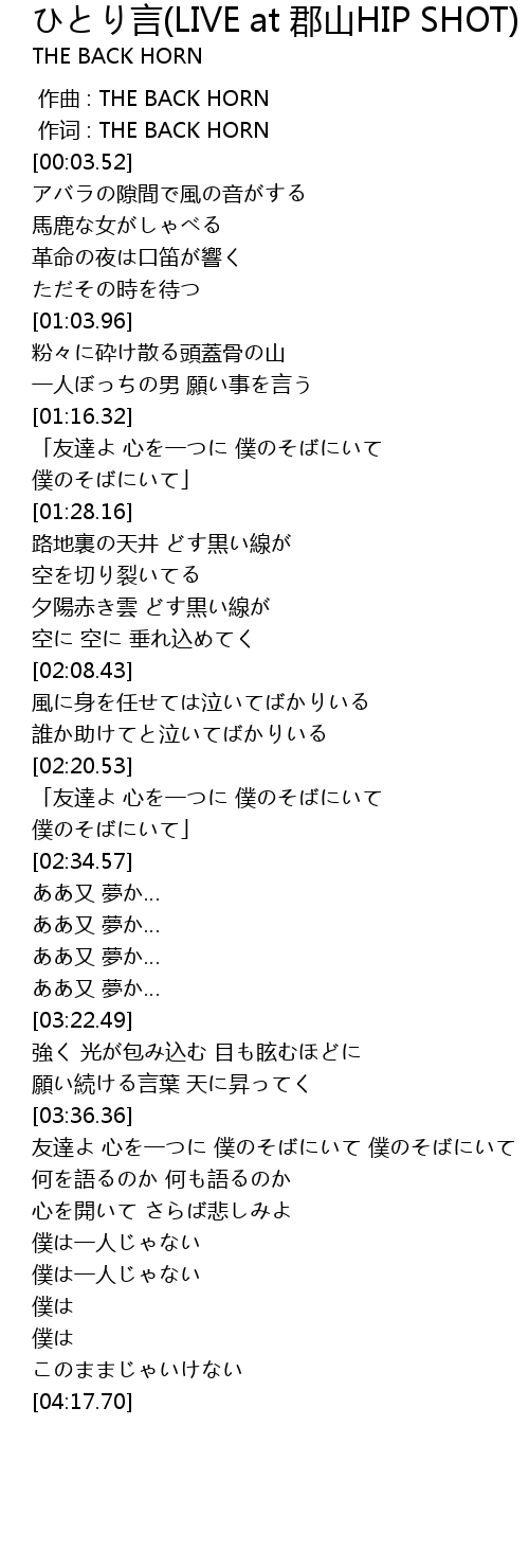 | [00:01.00] | zuò cí : THE BACK HORN |