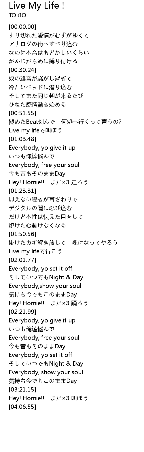 | [00:59.42] | Live my lifeで叫ぼう |