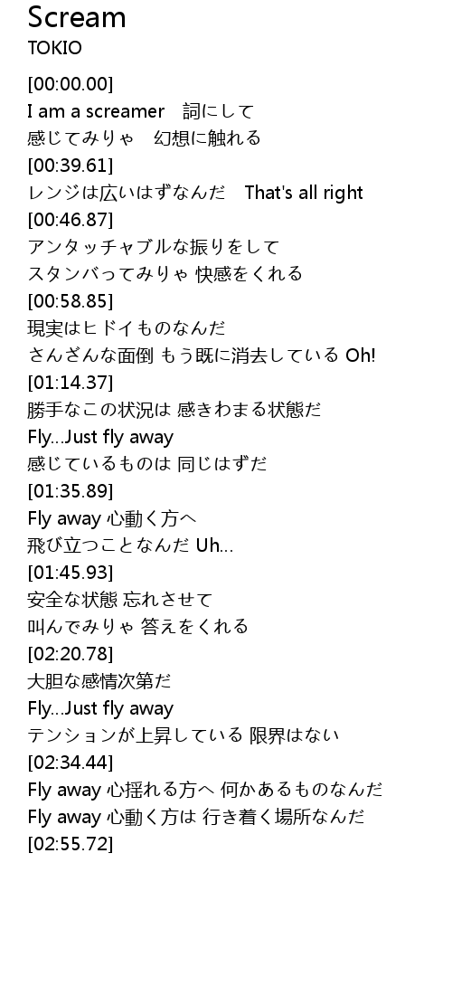 | [02:35.11] | Fly away 心揺れる方へ 何かあるものなんだ |